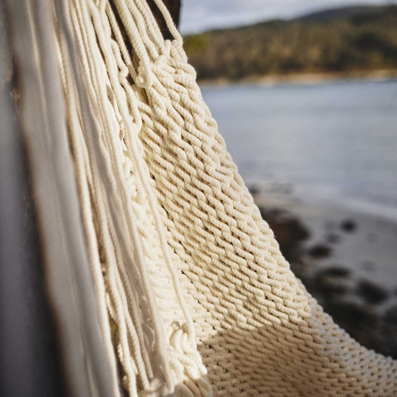 Dieser Hängesitz wurde mithilfe einer ganz besonderen Flechtart angefertigt: Das Netz ist nämlich so fein geknüpft, dass es den Körper wie eine sanfte Wolke umfängt und Ihnen ein wunderbares Gefühl der Geborgenheit schenkt. Hier können Sie in aller Ruhe entspannen und die Seele baumeln lassen!