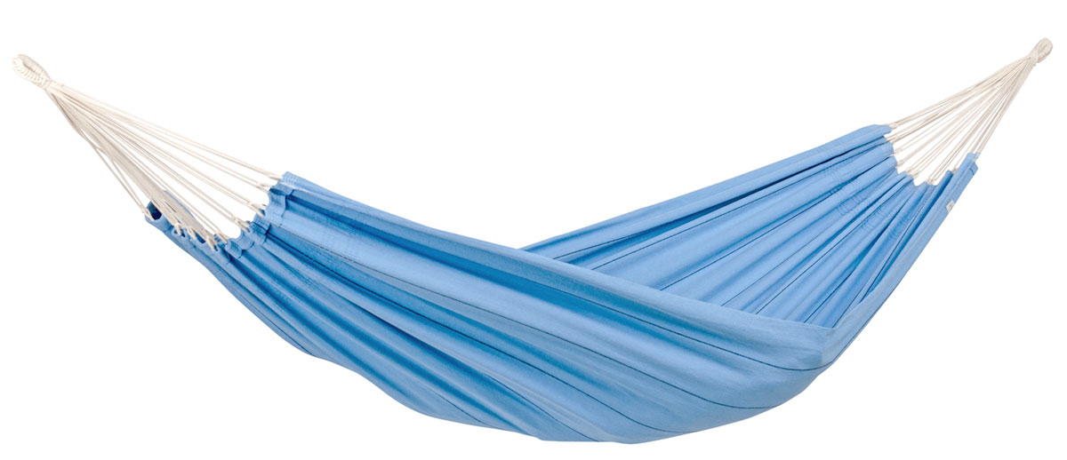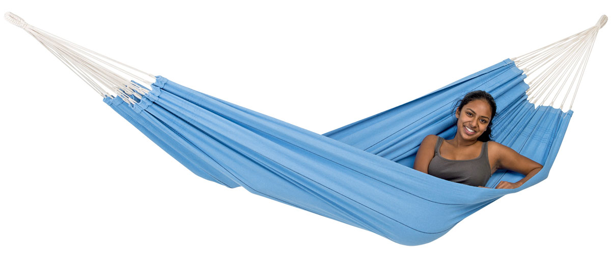 Hängematte Arte Blue. Original brasilianische Handarbeit! Eine Doppelhängematte mit perfektem Preis- Leistungsverhältnis anzubieten. Der 400 g/m² dichte Stoff nimmt es mit jedem Schwergewicht auf, Länge und Breite ergeben eine optimale Balance zwischen Kosten und Komfort.