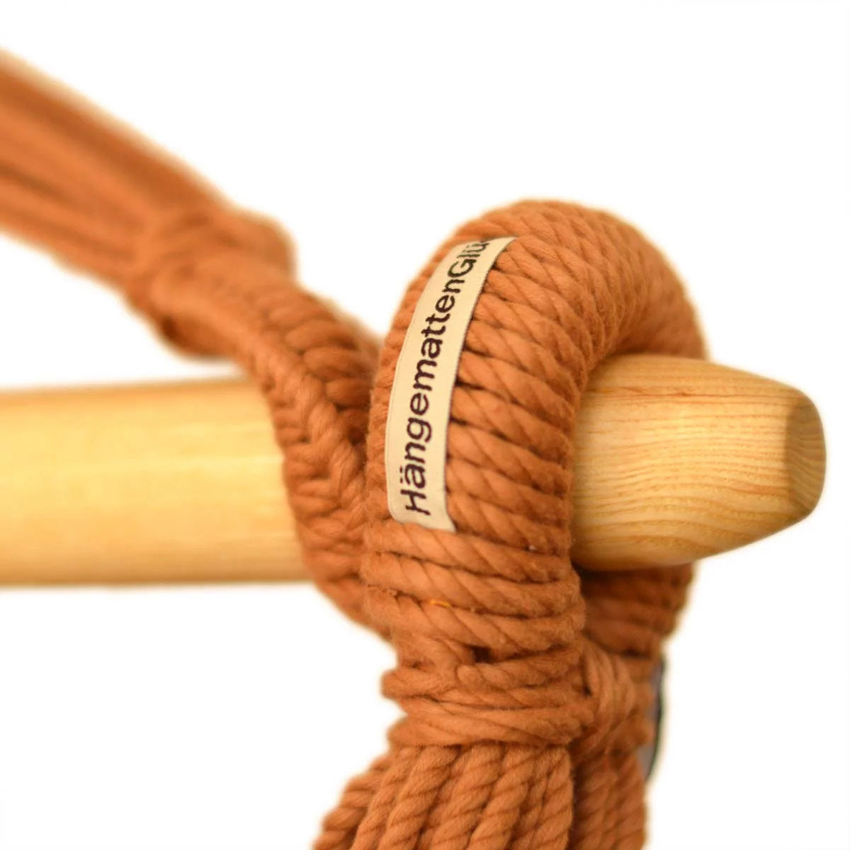 The hanging chair is hand-made in a WFTO (World Fair Trade Organization) certified company from the finest organic cotton. For the spreader bar, ash wood from the Black Forest was used.